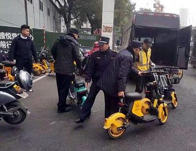 执法人员整治共享单车